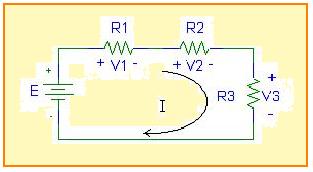 E = V1 + V2 + V3Con la Ley de Ohm: V1 = R1*I, V2 = R2*I, V3 = R3*I, reemplazando,E = R1*I + R2*I + R3*I, factorizando la corriente,E = I *( R1 + R2 + R3) (1)Si Rt es la resistencia total del circuito, entonces,E = I* Rt ,comparando con al ecuación (1), se puede concluir que:Req = R1 +R2 + R3