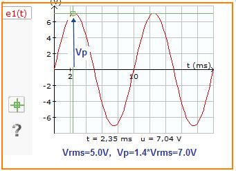 Vp = 1.4 Vrms, Vrms = Vp / 1.4