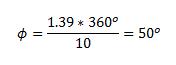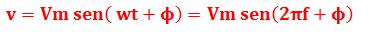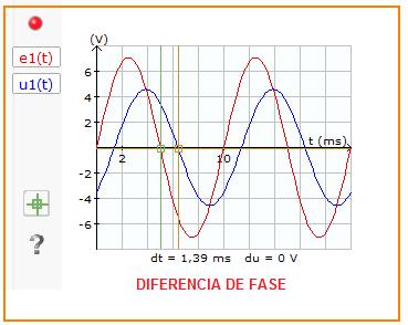 En forma general una señal alterna es descrita por una ecuación donde se refleje su magnitud, frecuencia y fase. La fase es el grado de corrimiento en grados que tiene una señal con respecto al eje vertical o a otra señal. En la figura de abajo, la señal roja e1(t) es una señal senoidal, en un tiempo t=0 su valor es cero por lo tanto se dice que su fase es de 0 grados. La señal azul u1(t) tiene un desfase con relación a e1(t). Para conocer su valor en grados se hace una relación teniendo en cuenta su desfase en tiempo. En la figura el desfase es de 1.39 sg. Como el periodo (tiempo en un ciclo) es de 10 msg que corresponde a un ángulo de 360 grados, su fase en grados es: