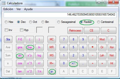 Para el último cálculo se coloca la calculadora en sexagecimal y se hace: