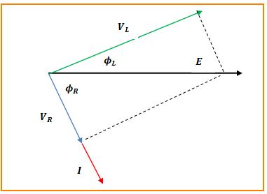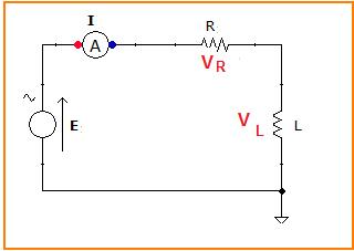 E es el voltaje de la fuente de corriente alterna, VR es el voltaje en la resistencia y VL es el voltaje en la inductancia de la bobina.