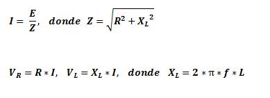 La corriente que circula por el circuito depende del valor de la resistencia y de la reactancia inductiva de la bobina, que en su conjunto se llama impedancia y es igual a: