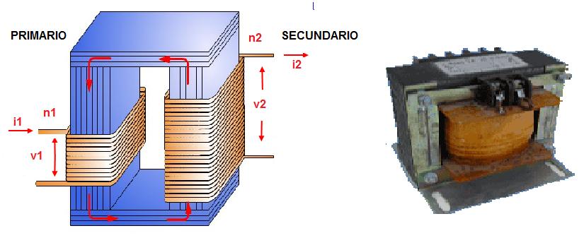 Una de la aplicaciones universales de las bobinas es el transformador que está compuesto por dos bobinas una de entrada y otra de salida. A la bobina de entrada se le denomina primario y a la de salida secundario. Estas dos bobinas vienen enlazadas por un núcleo generalmente de hierro laminado con el fin de que haya buena circulación del campo magnético.