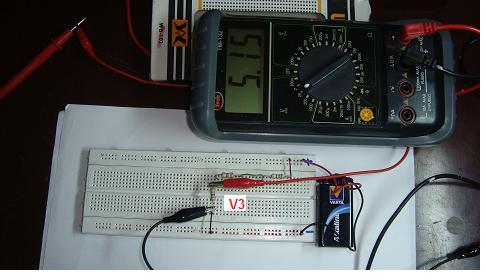 Realice el montaje del circuito de la figura. R1=150 ohm (café-verde-café), R2=390 ohm (naranja-blanco-café), R3=680 ohm (azul-gris-café)