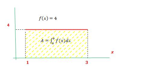 Como se observa el área mostrada es un rectángulo de ancho igual a 2 = 3-1 y de alto igual a 4. Su A = 2x4 = 8