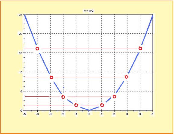 y = x2 = [25, 16, 9, 4, 1, 0, 1, 4, 9, 16, 25],