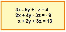 A continuación tenemos un sistema de tres ecuaciones, con variables o incógnitas (x, y, z):