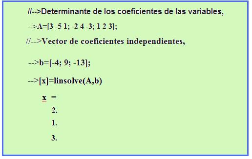 Los sistemas de dos ecuaciones se solucionan de forma fácil por sustitución. Esto es, despejar el valor de una variable y reemplazarla en la otra ecuación con el fin de dejar una incógnita, o sea, una variable. Pero es más fácil con Scilab.